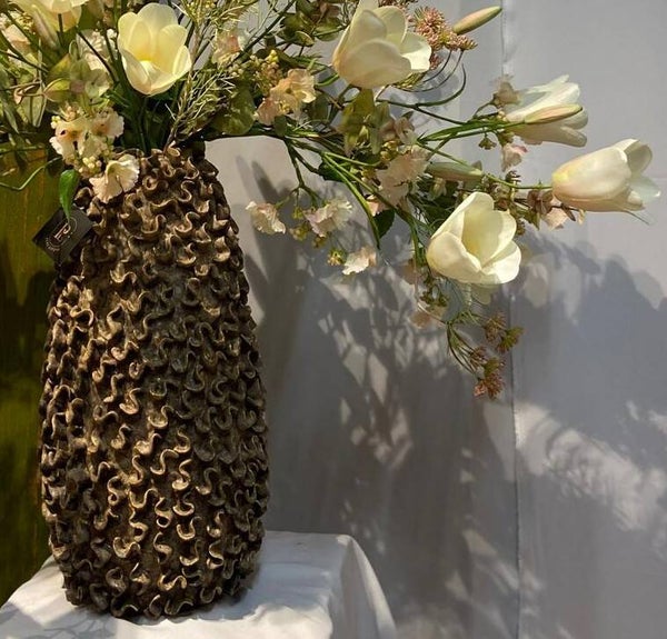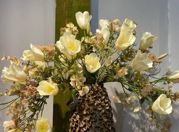 afmetingen vaas zonder bloemen : H45cm x 23cm omtrek.